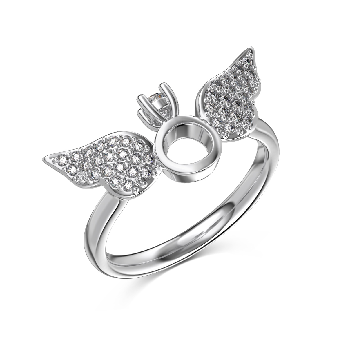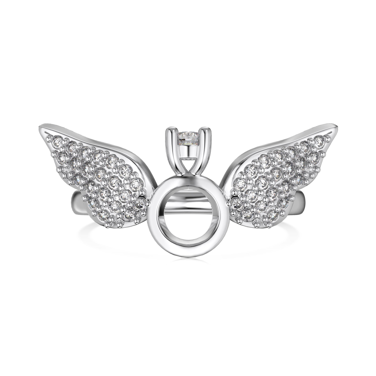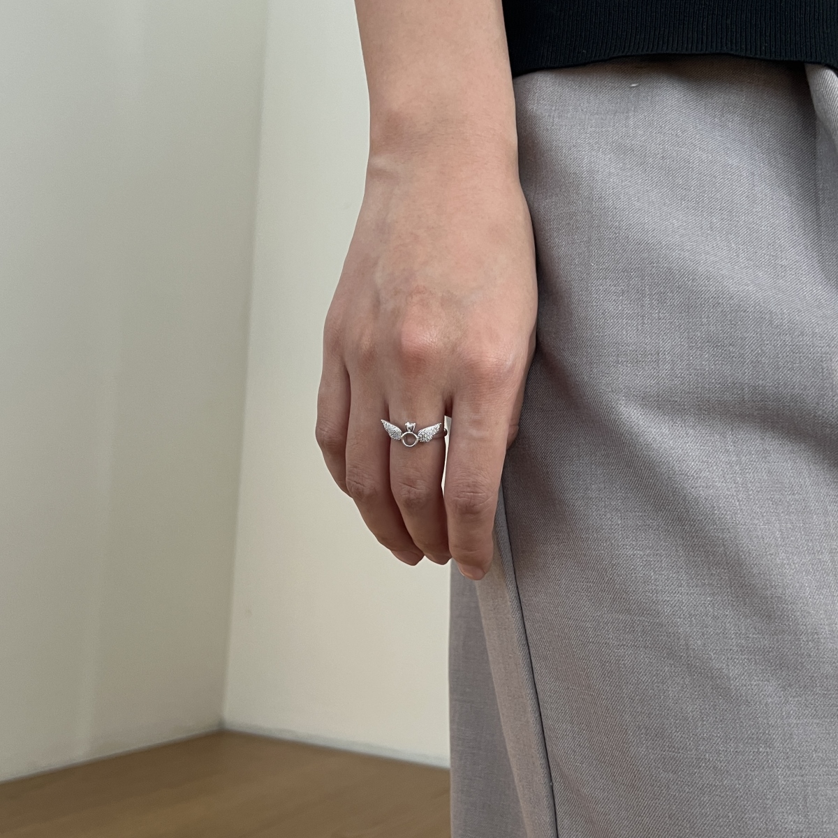 925 sterling silver ring featuring two angelic wings curving toward a delicate open circle — a symbol of protection and eternal unity.