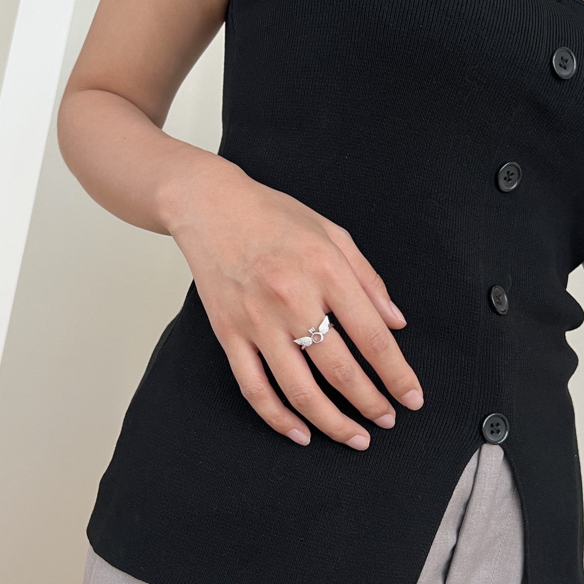 Gracefully symbolic and effortlessly elegant, the Halo Wing Embrace Ring mirrors the serenity of its matching necklace. Crafted from 925 sterling silver, this beautifully sculpted ring features two angel wings gently arching toward one another, forming and embracing a small open circle at the center — representing eternity, balance, and divine protection.